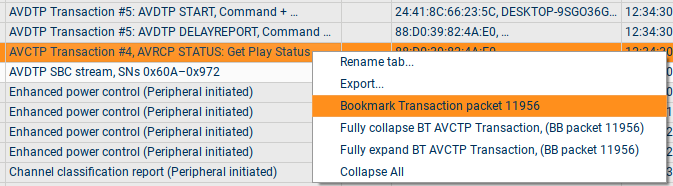 Bookmarks can either be added using the context menu in the Summary tab, or by selecting a packet and pressing